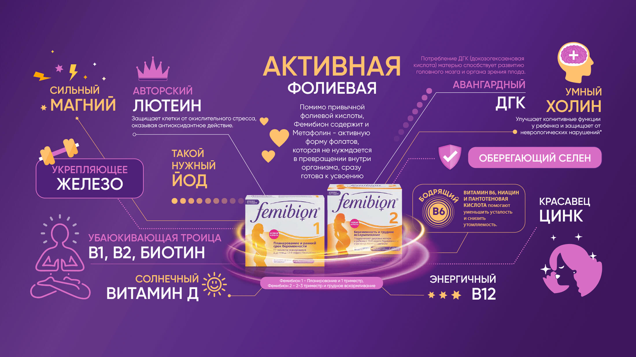 Поддержать организм женщины при планировании беременности, во время вынашивания и в период лактации, а также поспособствовать развитию плода и малыша, находящегося на грудном вскармливании, может помочь современный мультивитаминный комплекс Фемибион®.