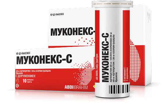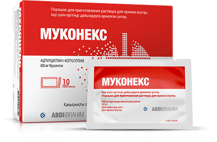Снижает вязкость секрета и облегчает его выведение из дыхательных путей. Благодаря ацетилцистеину, Муконекс® способствует отхождению вязкой мокроты и очищению бронхов.